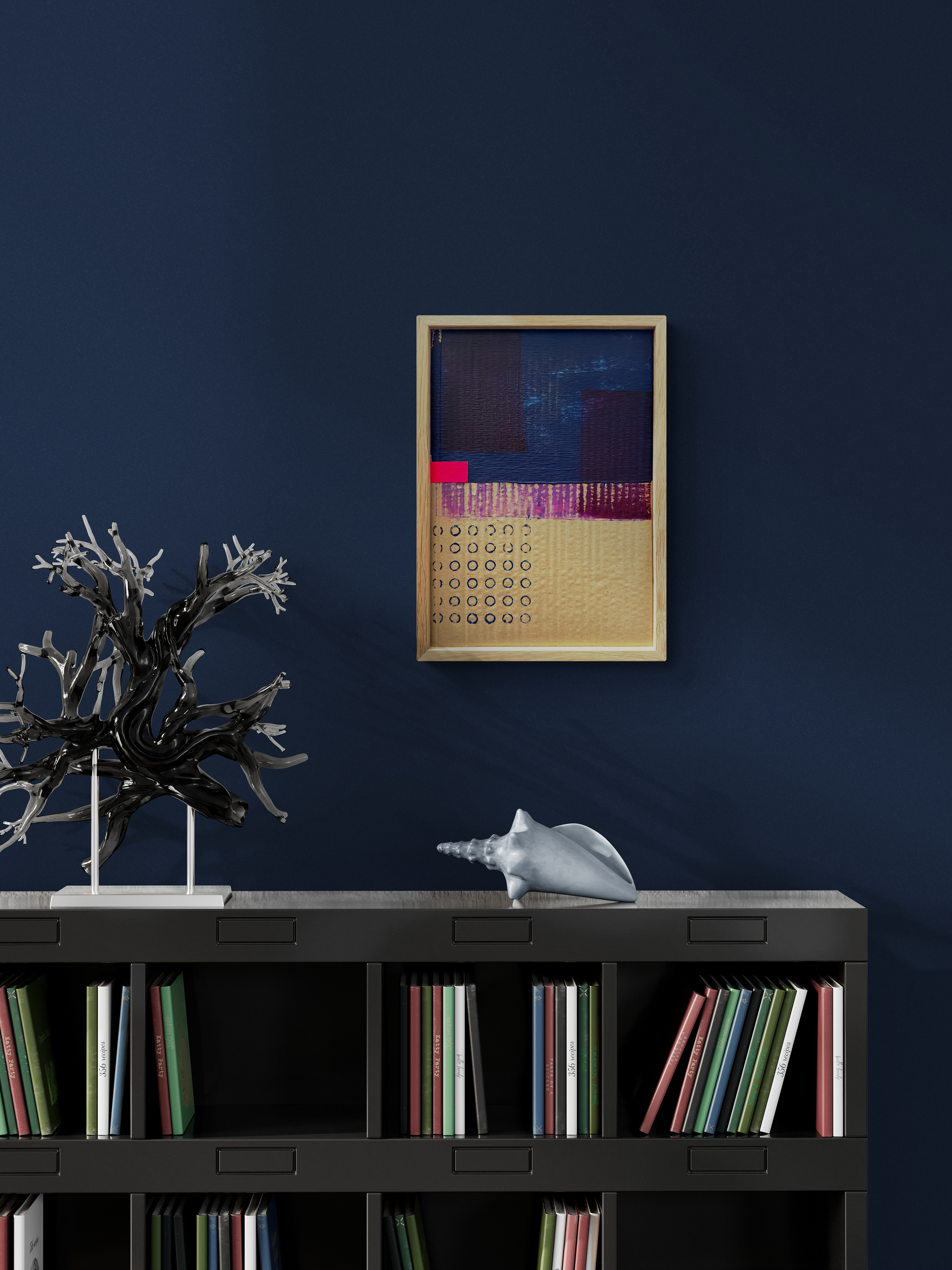 DIN A4, framed with oak frame.