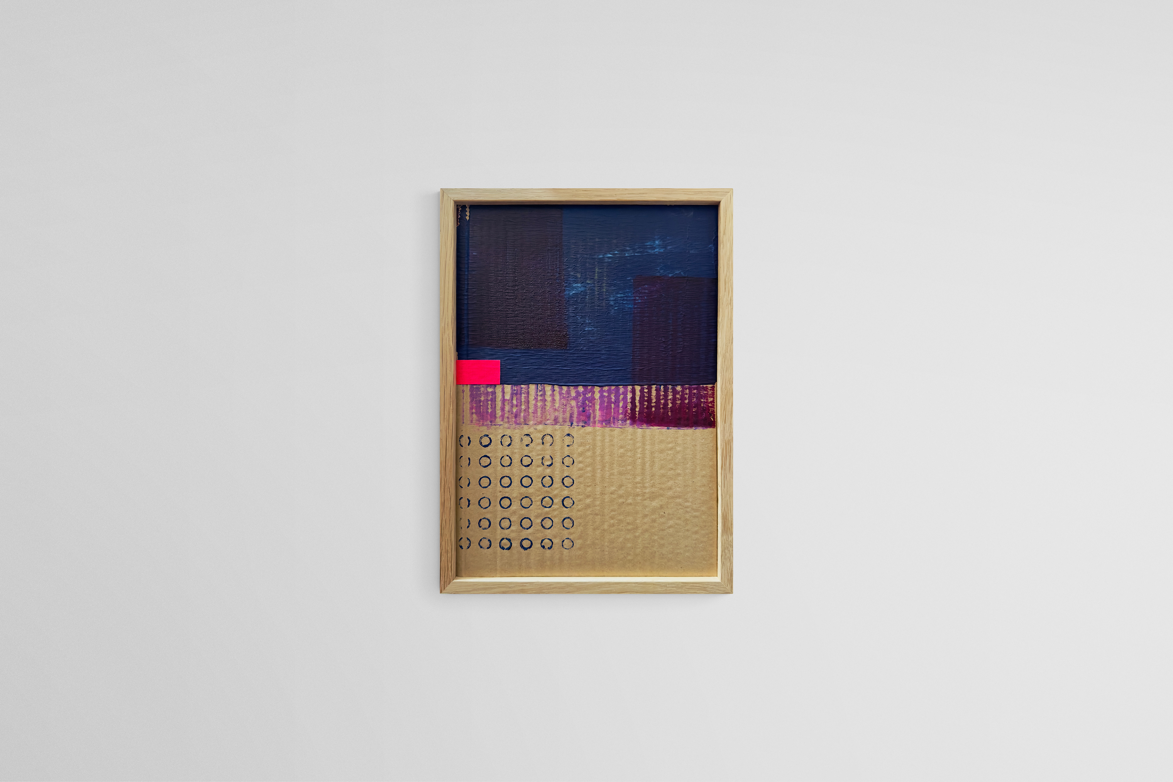 Acrylics on cardboard with neon pink adhesive tape.