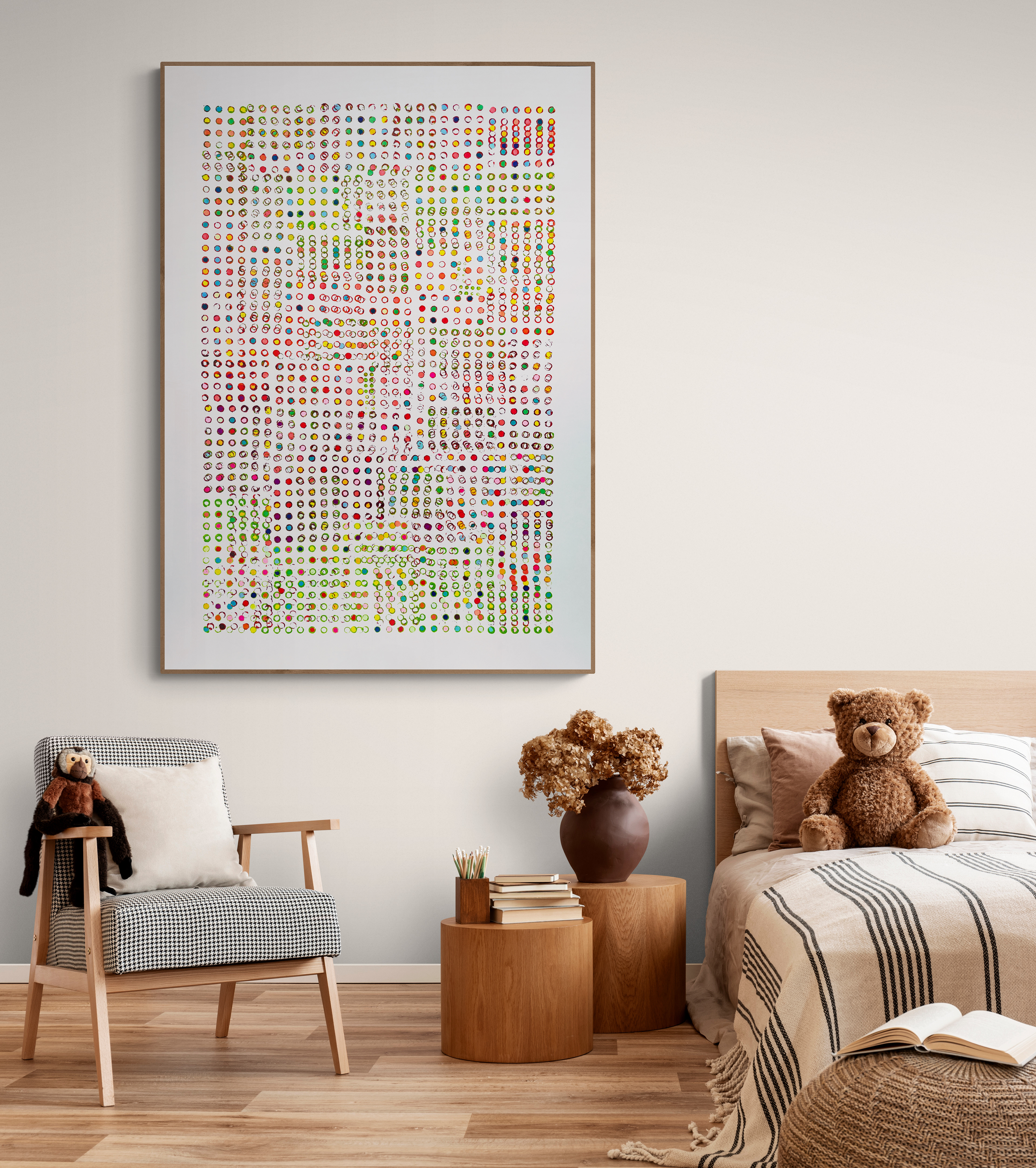 Green and red as stamp base color. Acrylic on paper with Copic pens. DIN A1 one of a kind.